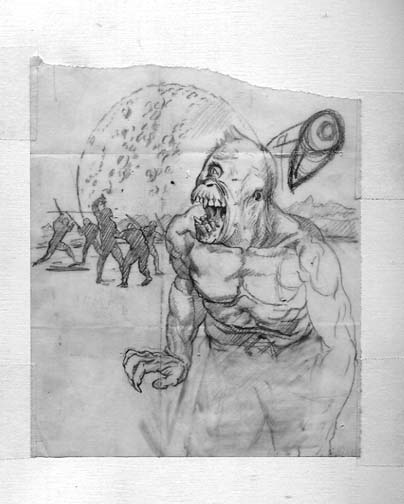 ORIGINAL PENCIL PRELIM FOR EDGAR RICE BURROUGHS BOOK COVER