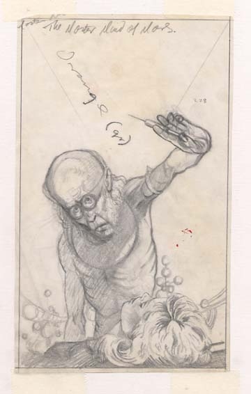 This is an original pencil sketch by British artist Richard Clifton-Dey, prepared in advance of completing the final painting used on the cover of the book published by NEL (New English Library) in 1974. Interestingly, the artist has titled the sketch "The Master Mind of Mars" however the book it was used for was